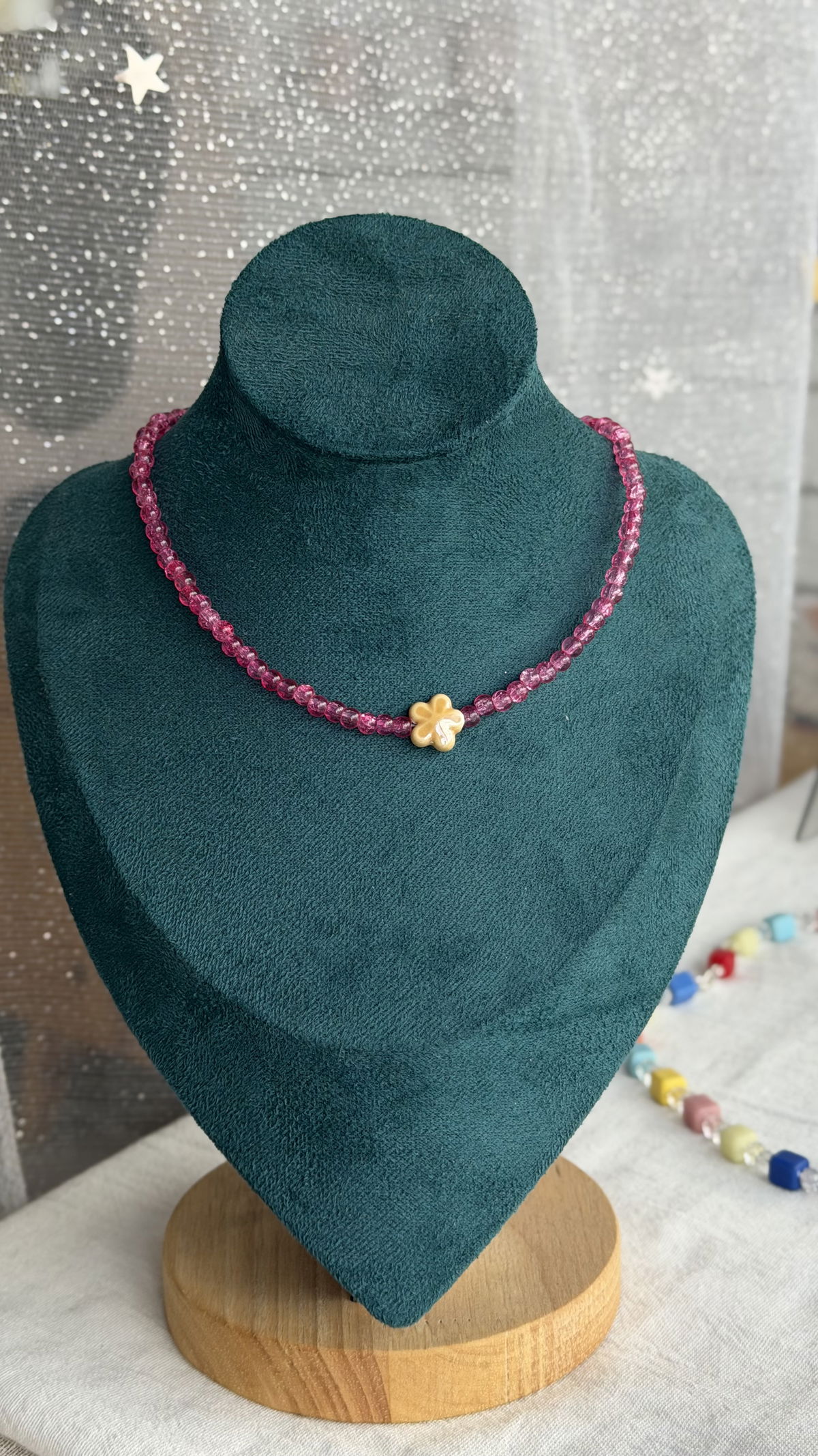 bolitas de vidrio y dije de ceramica